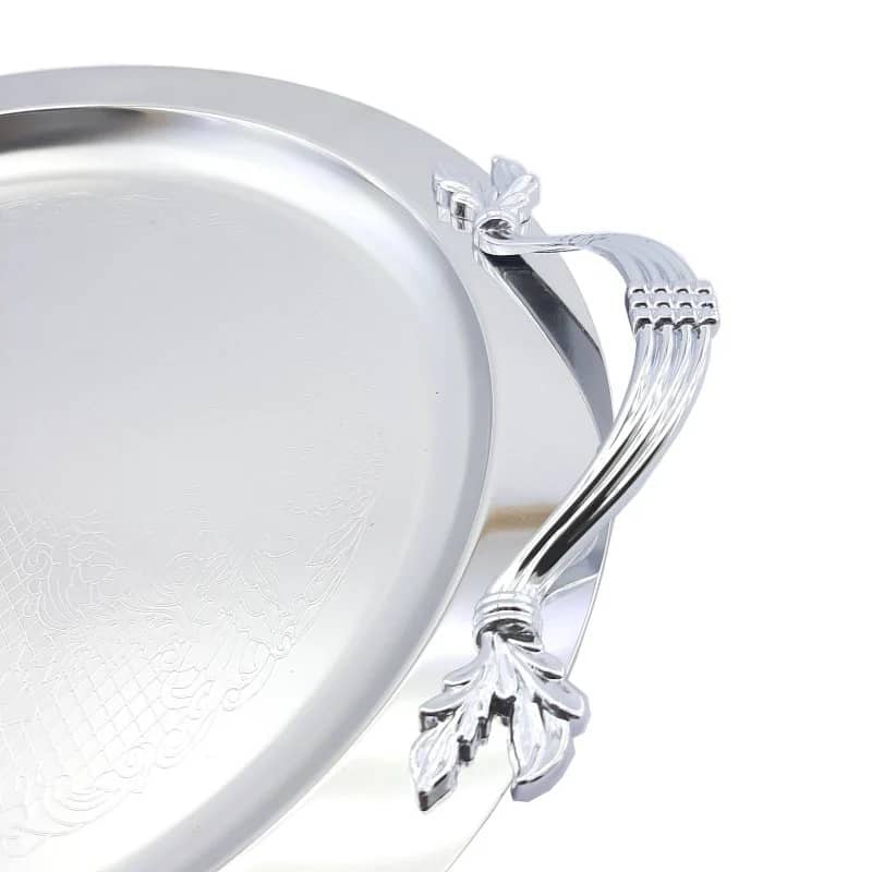 سینی استیل مدل برگ شرکت سلینا دارای طراحی بی نظیر و ظزیف در کف محصول بوده و براقی و زیبایی چشم نوازی دارد که کیفیت ساخت بالای آن با دسته های فلزی در کنار ضمانت نامه بلند مدت لذت یک پذیرایی دلچسب را برای شما فراهم میکند