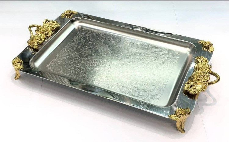 سینی استیل مدل رز طلایی شرکت سلینا دارای طراحی بی نظیر و ظریف در کف محصول بوده و براقی و زیبایی چشم نوازی دارد که کیفیت ساخت بالای آن با در کنار ضمانت نامه بلند مدت لذت یک پذیرایی دلچسب را برای شما فراهم میکند