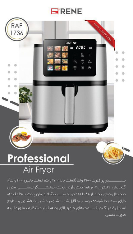 سرخ کن بدون روغن 9لیتری دو المنت دیجیتال مدلRAF 1736 رنه RENE