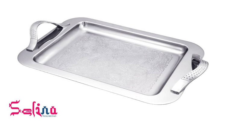 سینی استیل مدل نگین شرکت سلینا دارای طراحی بی نظیر و ظزیف در کف محصول بوده و براقی و زیبایی چشم نوازی دارد که کیفیت ساخت بالای آن با دسته های فلزی در کنار ضمانت نامه بلند مدت لذت یک پذیرایی دلچسب را برای شما فراهم میکند