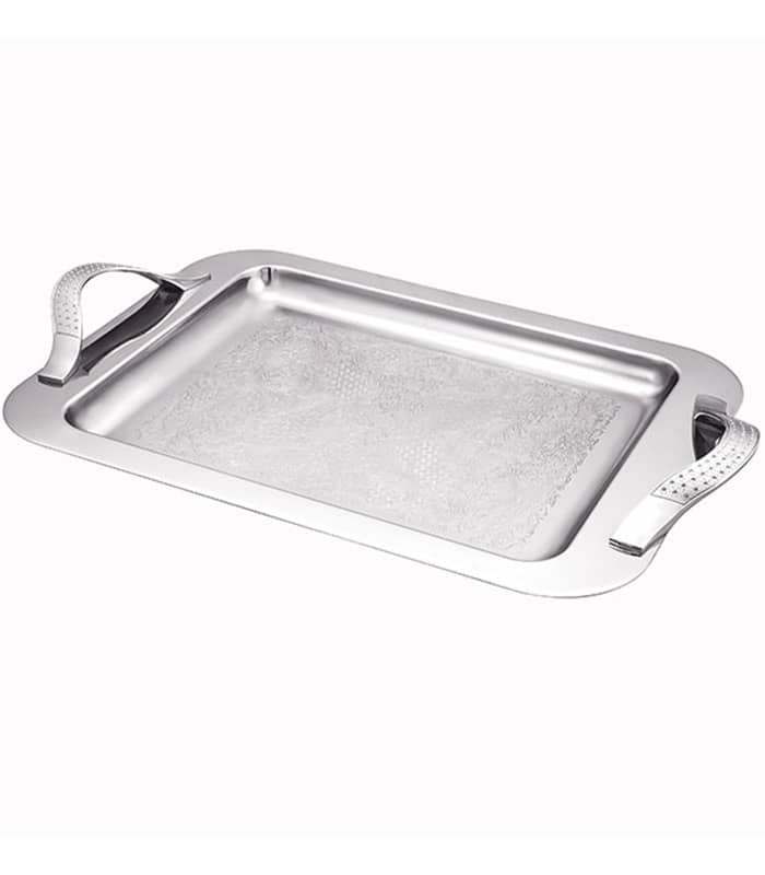 سینی استیل مدل نگین شرکت سلینا دارای طراحی بی نظیر و ظزیف در کف محصول بوده و براقی و زیبایی چشم نوازی دارد که کیفیت ساخت بالای آن با دسته های فلزی در کنار ضمانت نامه بلند مدت لذت یک پذیرایی دلچسب را برای شما فراهم میکند