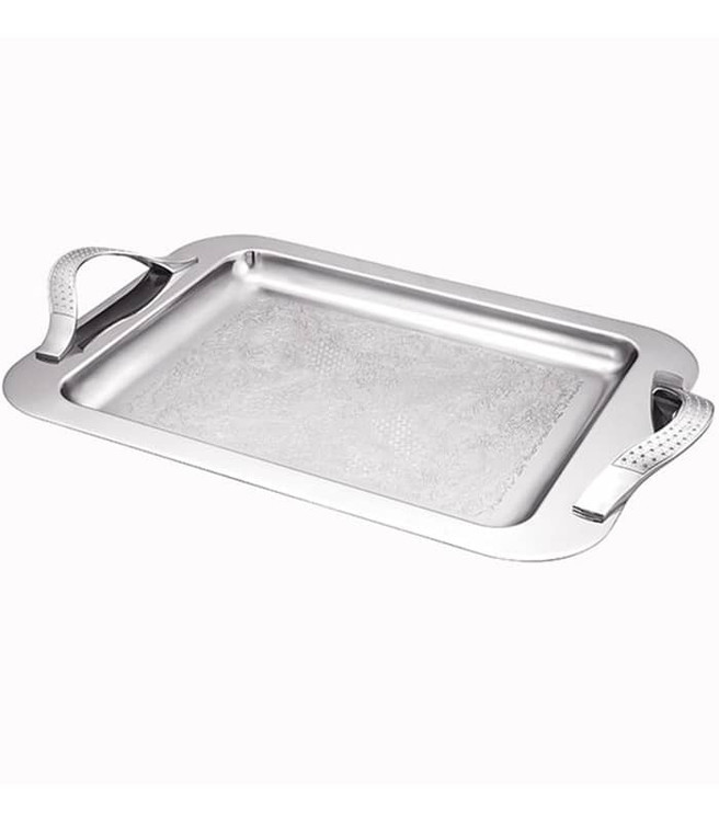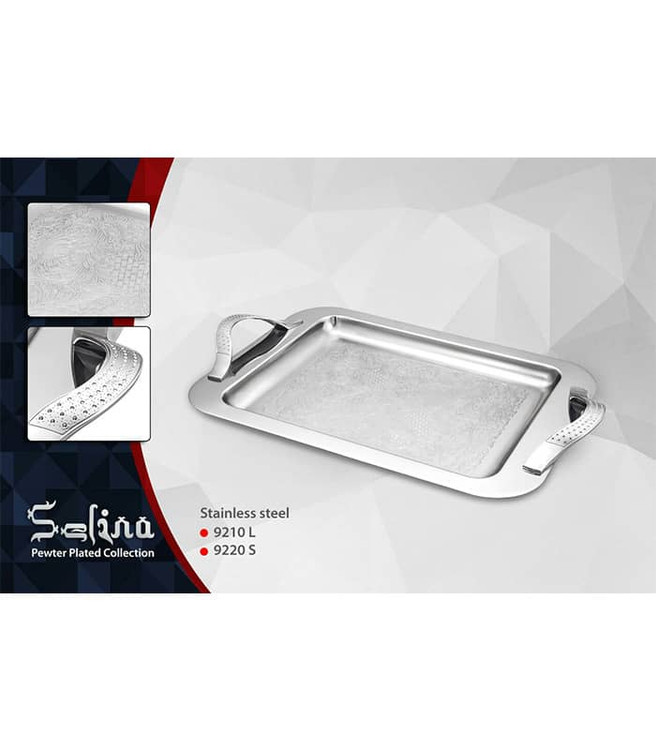 سینی استیل مدل نگین شرکت سلینا دارای طراحی بی نظیر و ظریف در کف محصول بوده و براقی و زیبایی چشم نوازی دارد که کیفیت ساخت بالای آن با دسته های فلزی در کنار ضمانت نامه بلند مدت لذت یک پذیرایی دلچسب را برای شما فراهم میکند